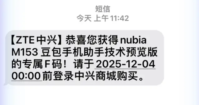 12月1日,字节跳动旗下AI助手豆包和中兴通讯(000063)先后宣布,搭载豆包手机助手技术预览版的工程样机nubia(努比亚) M153少量发售。目前该机型在中兴商城售卖,仅有16GB+512GB一款配置,售价为3499元。